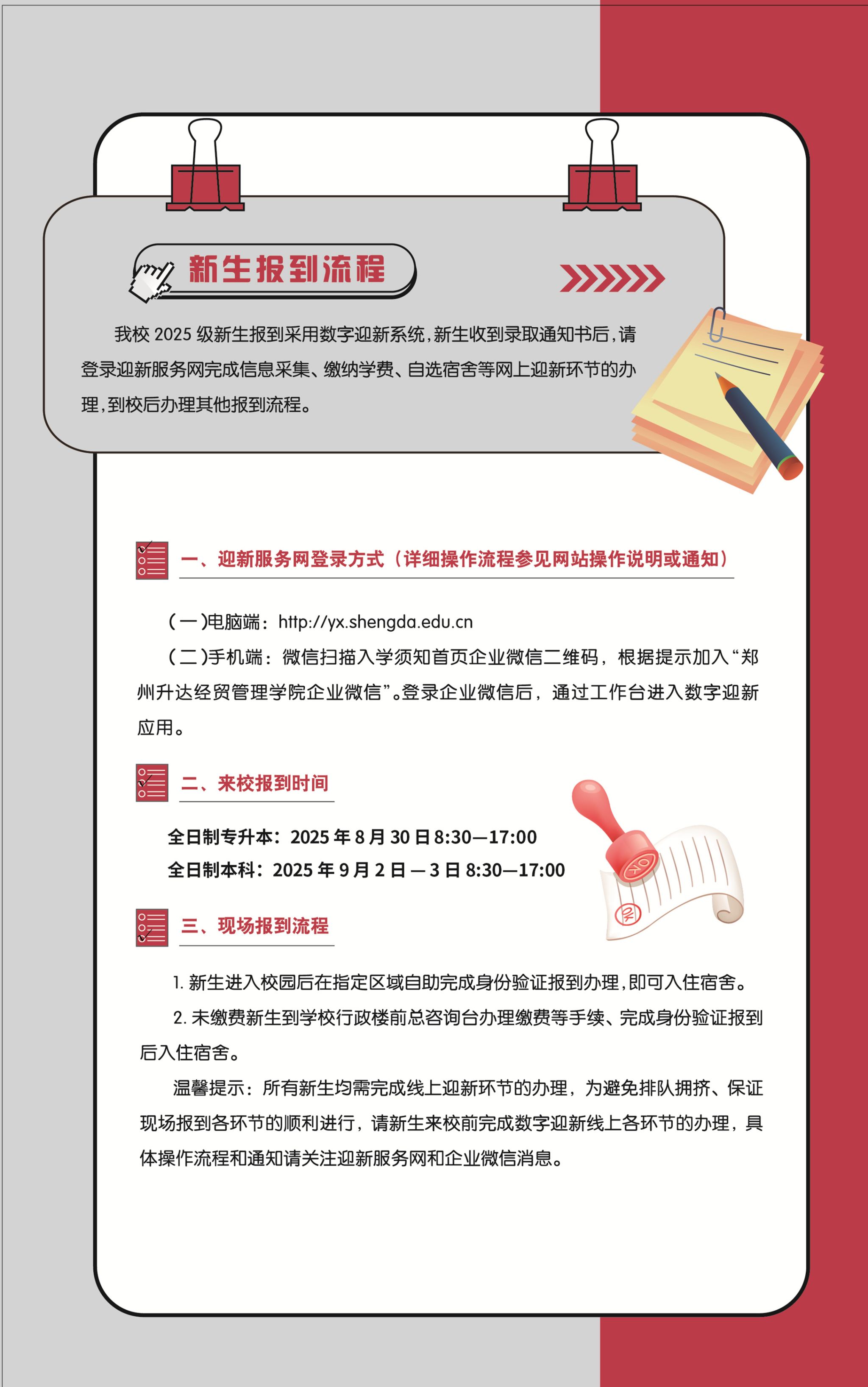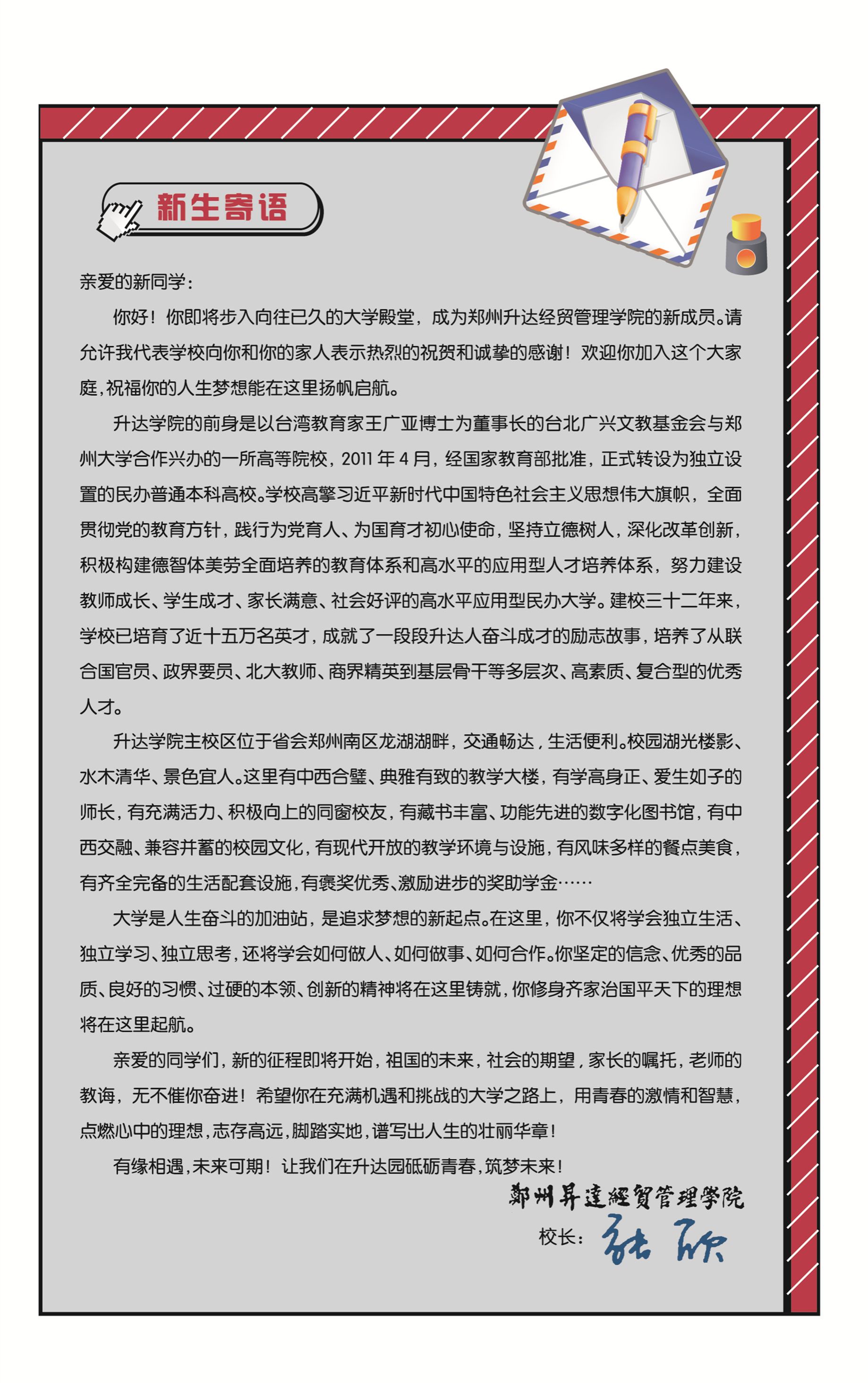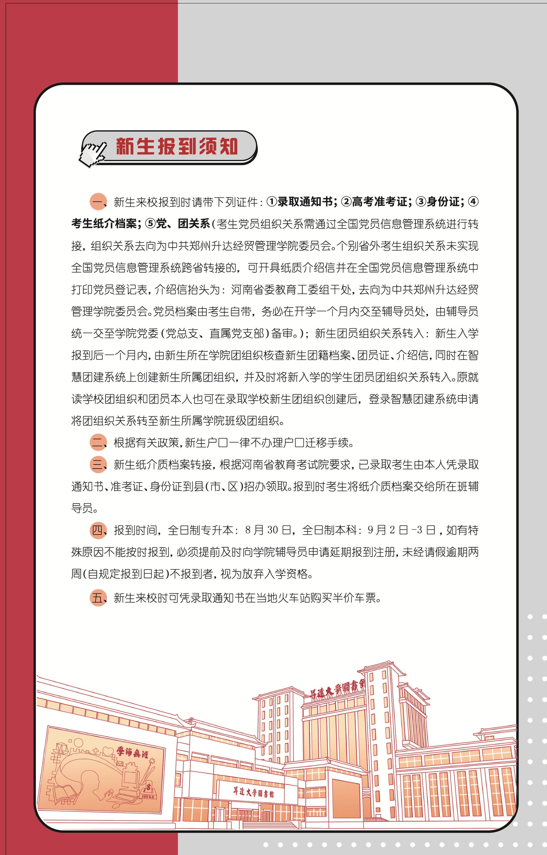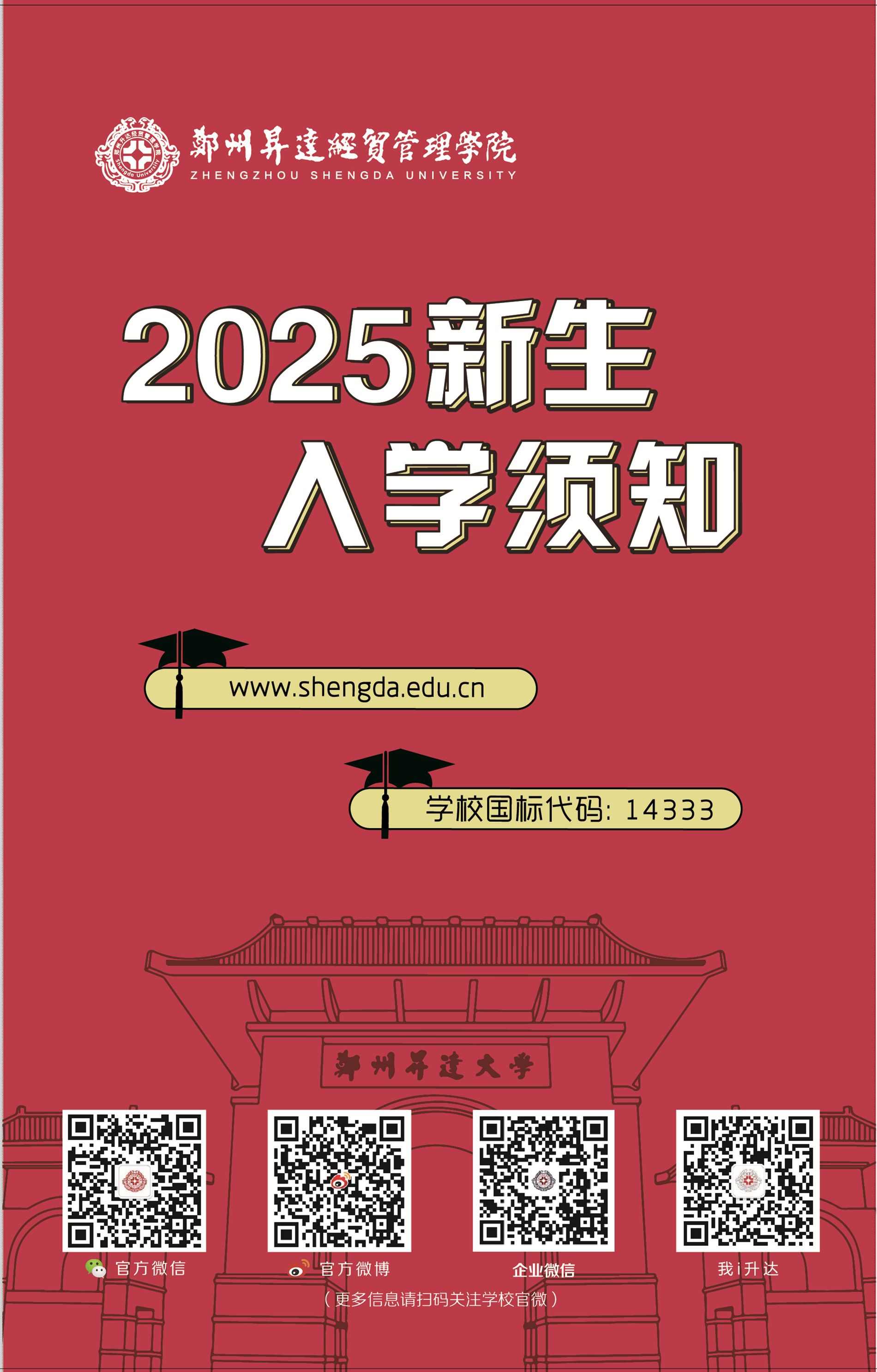 郑州升达经贸管理学院2025年本科新生入学须知